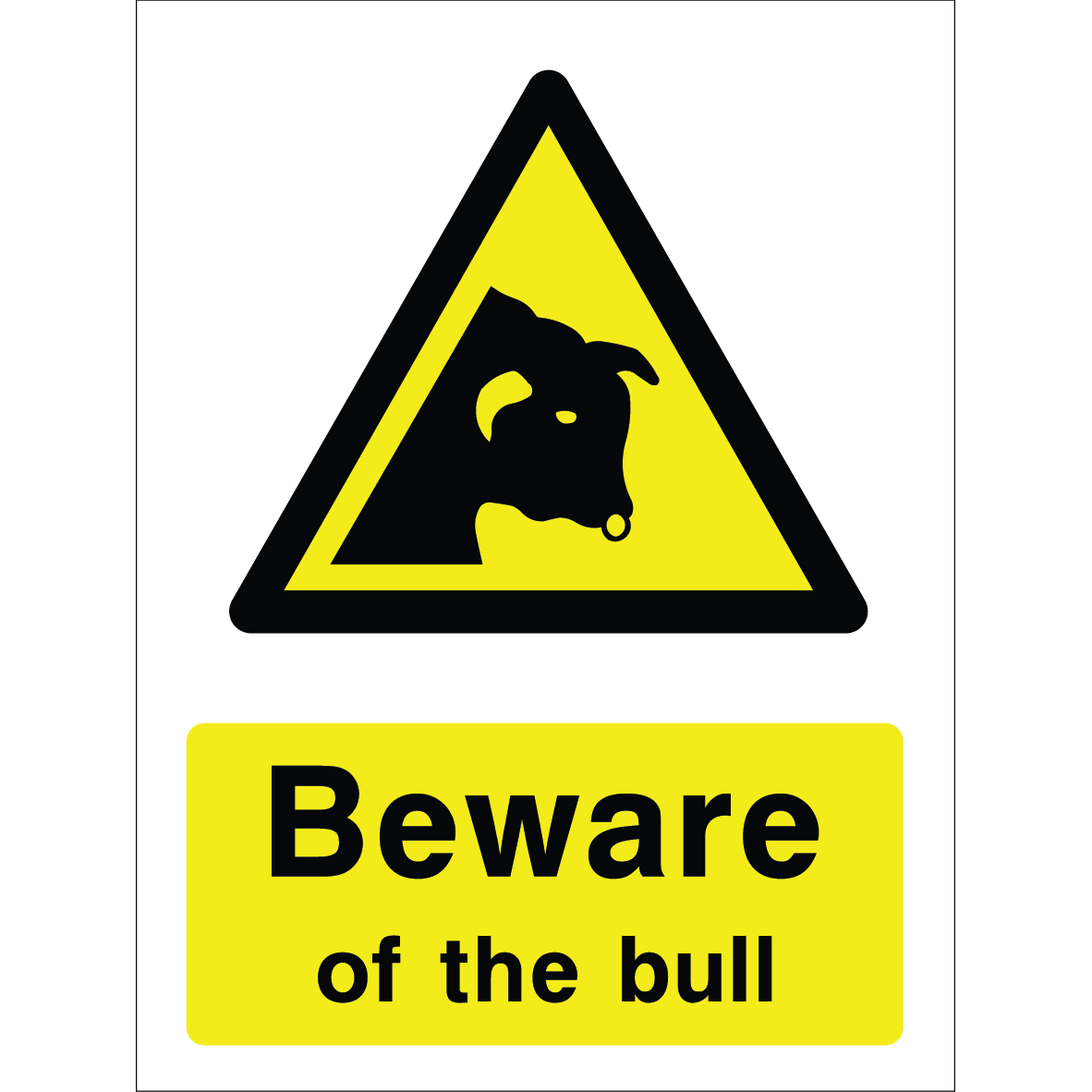 The Beware of the Bull Warning Sign features a prominent triangular yellow background with a bold black border. Inside, there is a black silhouette of a bull’s head, universally recognised as a livestock warning symbol. Below the triangle, a yellow rectangular panel displays the bold black text: “Beware of the bull,” clearly indicating the presence of bulls in the area. Made from durable, weather-resistant material, this sign is suitable for outdoor use along rural roads, farm entrances, or livestock crossing zones. Proper placement of this sign encourages caution, reducing the risk of collisions and ensuring safety for animals and road users.