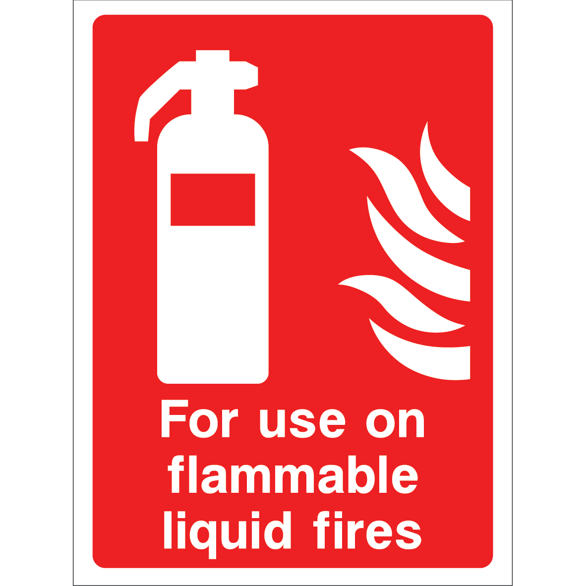 This prominent sign clearly indicates that the fire extinguisher is suitable for flammable liquid fires, ensuring proper safety measures are followed.