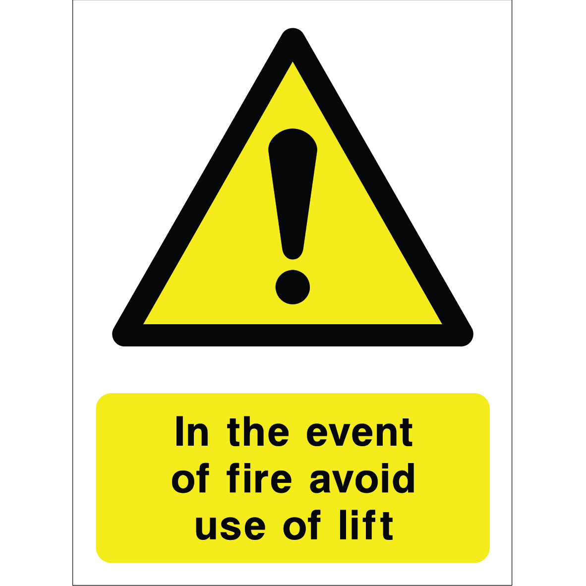 The “In the event of fire, avoid use of these lifts” sign features a bright yellow background with bold black text for maximum visibility and immediate comprehension. At the top, there’s a large yellow triangle with a black exclamation mark symbol, universally indicating caution. Below, a clear, concise message reads: “In the event of fire avoid use of these lifts” in bold black letters on a yellow background. Made from durable, weather-resistant materials, this sign is suitable for indoor and outdoor environments such as factories, commercial buildings, or warehouses. Its sturdy construction ensures long-lasting performance even in harsh conditions. The message is direct and critical, helping prevent accidents or injuries during emergencies by warning personnel to steer clear of the lifts during fires. Installing this sign promotes safety awareness and compliance with emergency procedures, ensuring everyone’s safety.